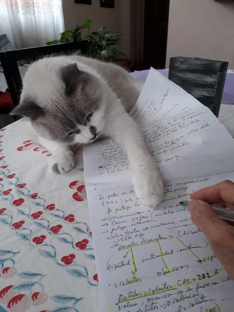 Cuando la llamé para entrevistarla para este blog, estaba leyéndole en voz alta un poema a su gato, Samir Elias, quien según ella, “le encanta escuchar sus poemas y es el primer crítico de sus borradores”.
