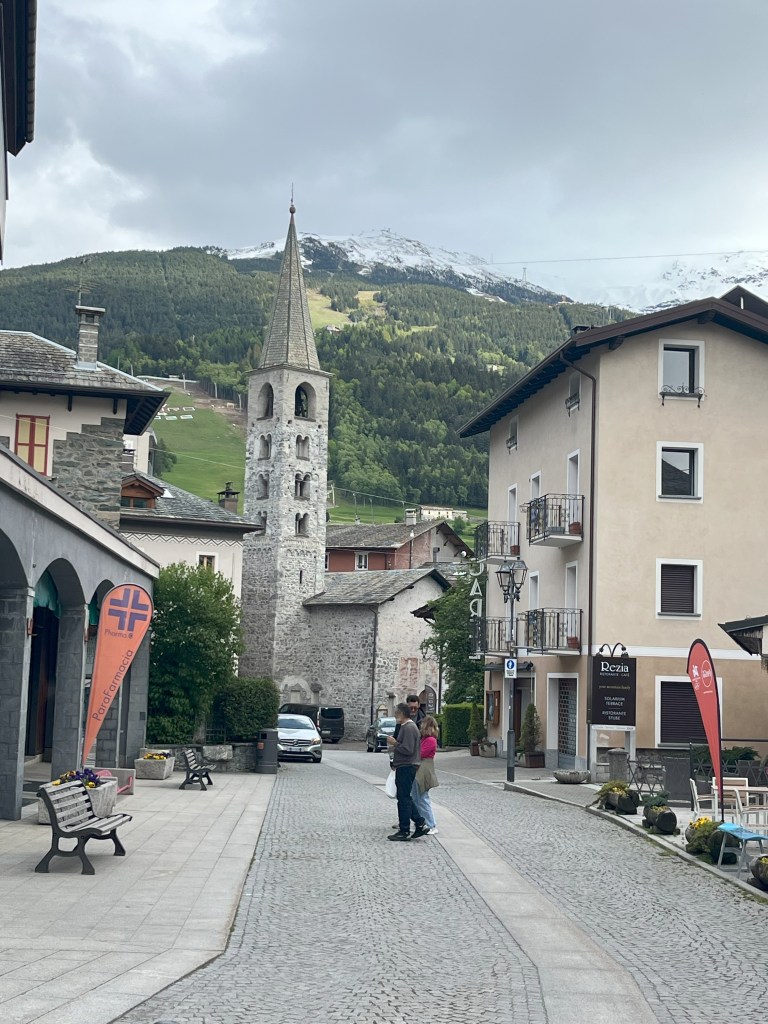 First in Bormio, a town known for its thermal springs, I met with a couple of good friends from Milan and after cheering the Giro D’Italia cycling titans, we went up the Stelvio Pass to check the snow on its readiness for the summer ski season which goes from the last week of May to October when the mountain is closed for business.